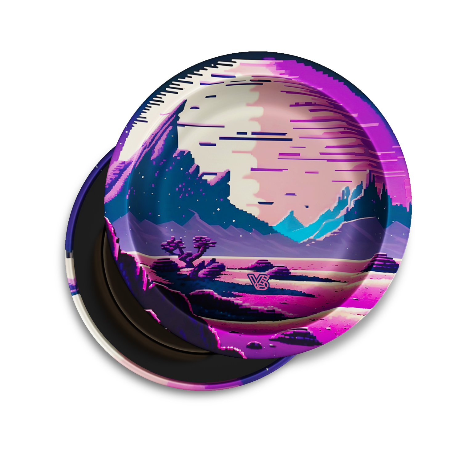 Stash with swagger. This pocket-friendly container rocks a rolling-tray-shaped lid, all-around 360° art, and an air-tight silicone seal to help lock in freshness. Pop the lid to prep, snap it shut to roll out. Function on top, flex all around.