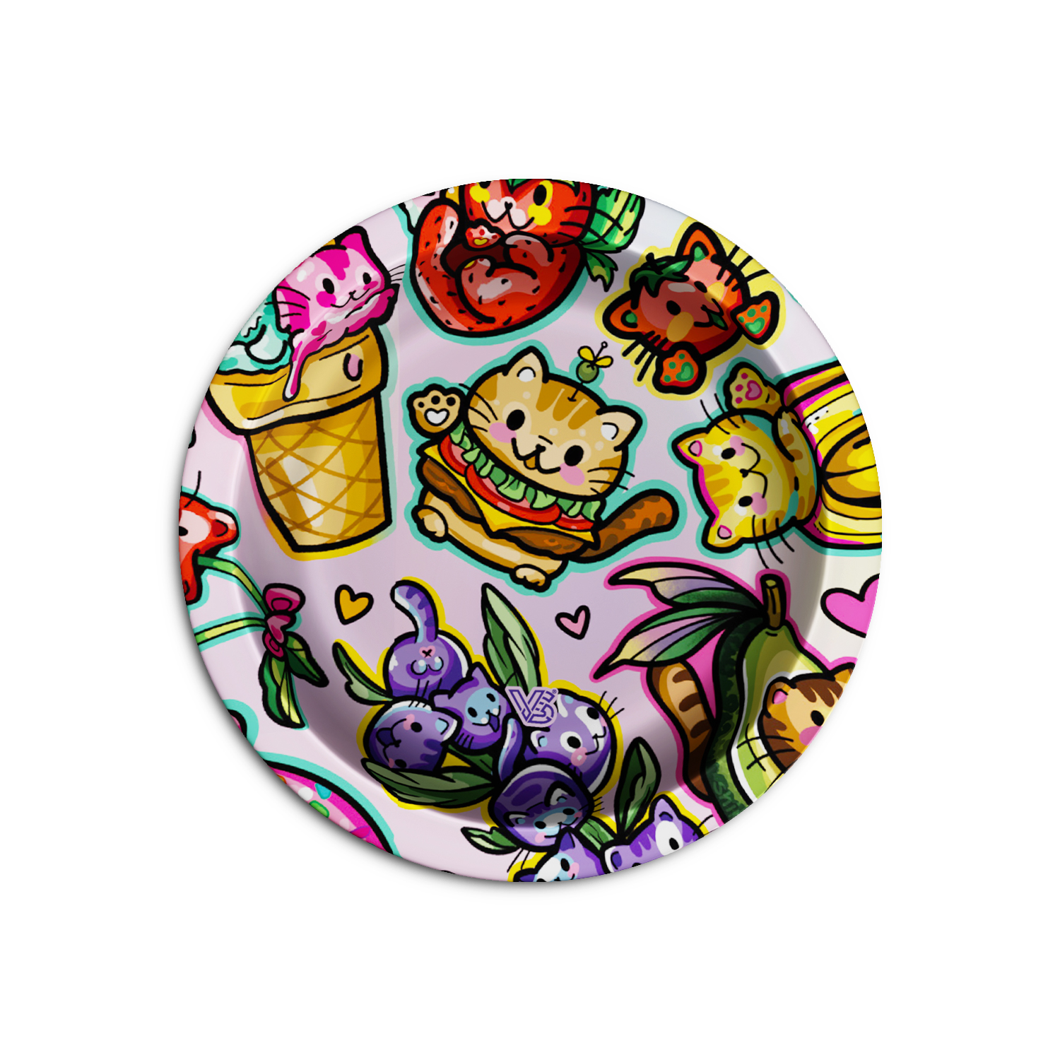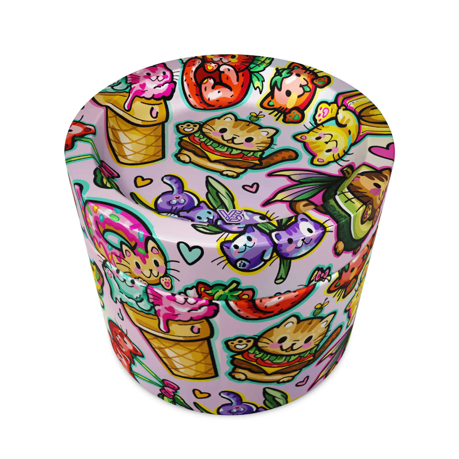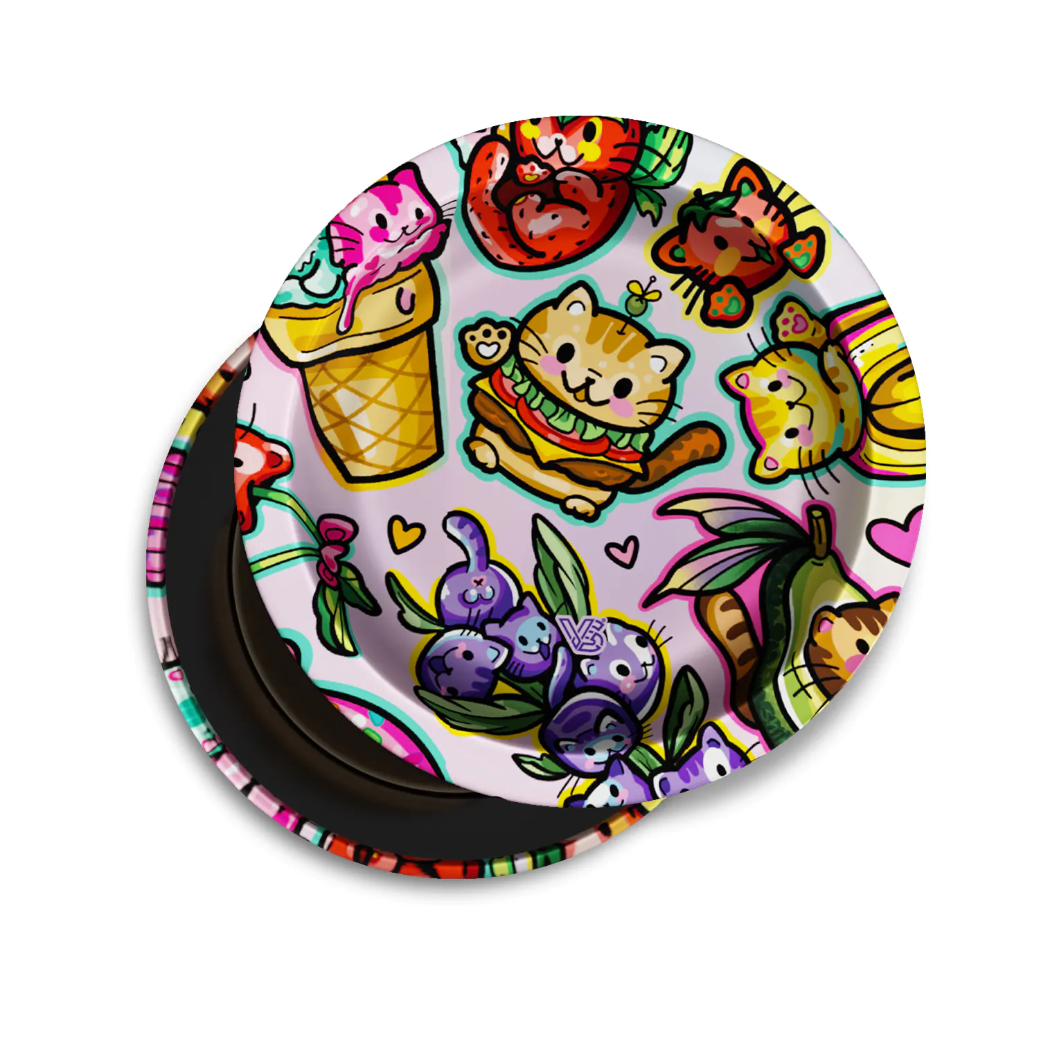 Stash with swagger. This pocket-friendly container rocks a rolling-tray-shaped lid, all-around 360° art, and an air-tight silicone seal to help lock in freshness. Pop the lid to prep, snap it shut to roll out. Function on top, flex all around.